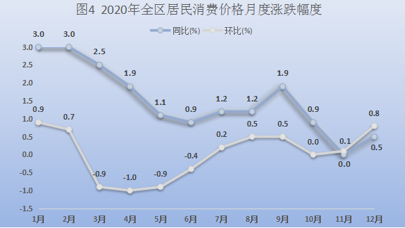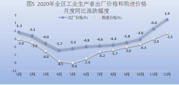 全年全区居民消费价格比上年上涨1.5%,工业生产者出厂价格下降3.1%,工业生产者购进价格下降5.3%,农产品生产者价格[4]上涨13.1%。